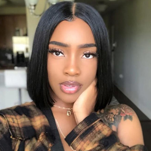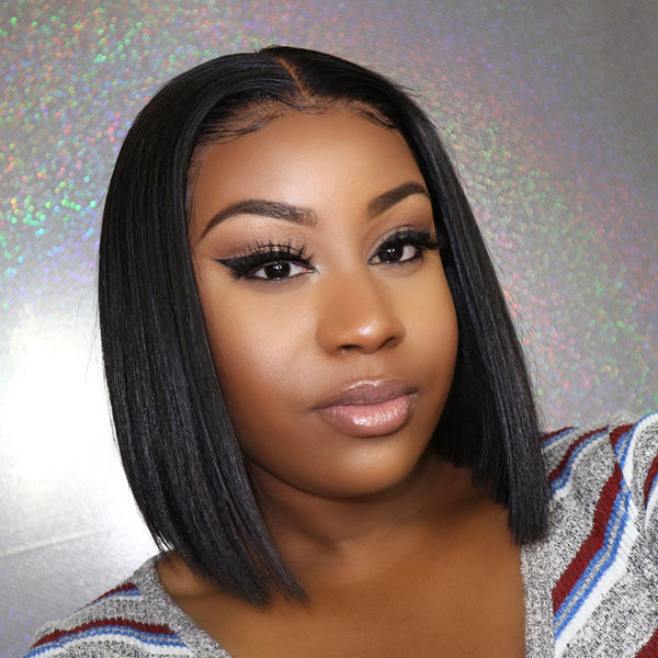 1x6 Bob Wig Lace Front Wig Straight Human Hair Silky Blunt Cut