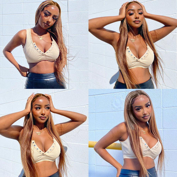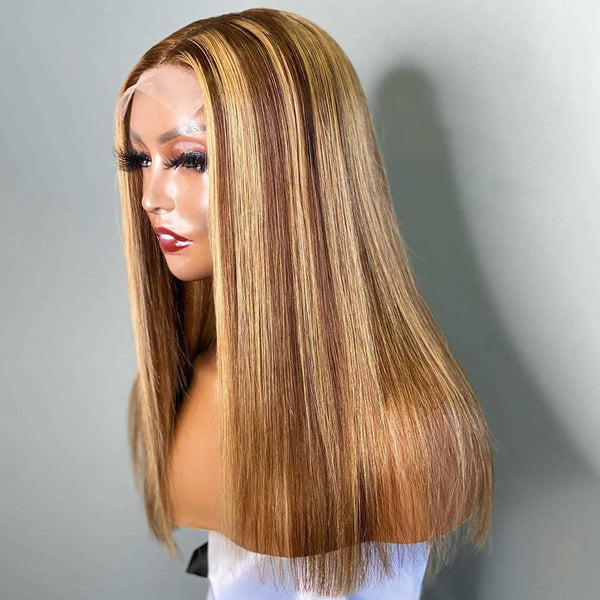 13x4 #4/27 Straight Ombre Lace Front Wig Highlight Virgin Human Hair