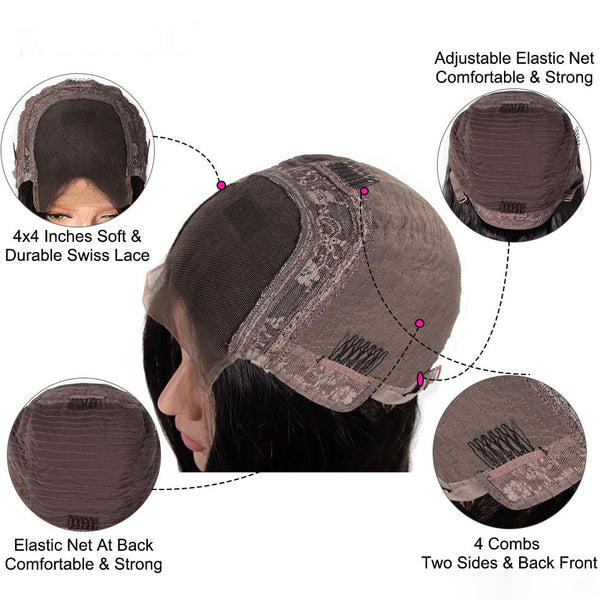 4x4 Lace Front Human Hair Clousre Wigs Deep Wave