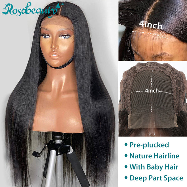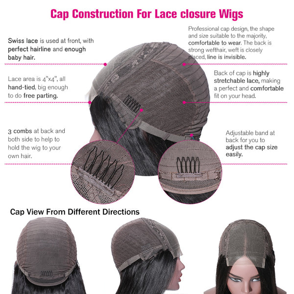 4x4 Lace Front Human Hair Closure Wigs Straight