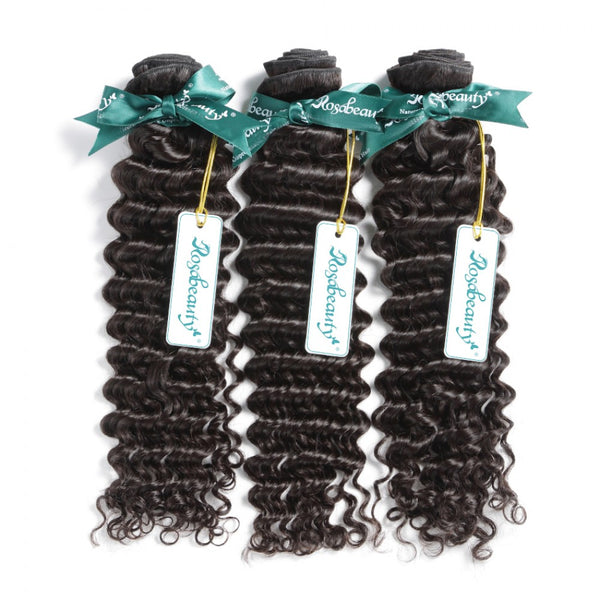 7A 3 Bundles Hair Weave Brazilian Hair With Silk Base Closure Deep Wave